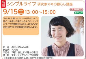 三郷市開催「シンプルライフ研究家マキの暮らし講座」