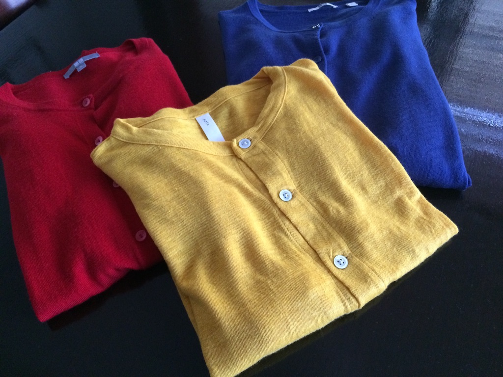 ワタシの持っているトップスで3色カーディガンを抜いてみるとこの地味さ。