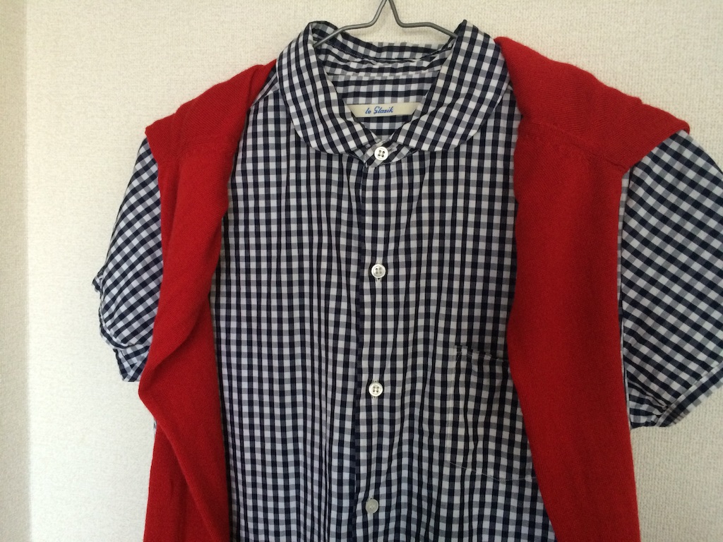 白のリネンブラウスはネストローブ、ギンガムチェックはLE GLAZIK(ル グラジック)です。15秋冬でこれの長袖も出ていました!