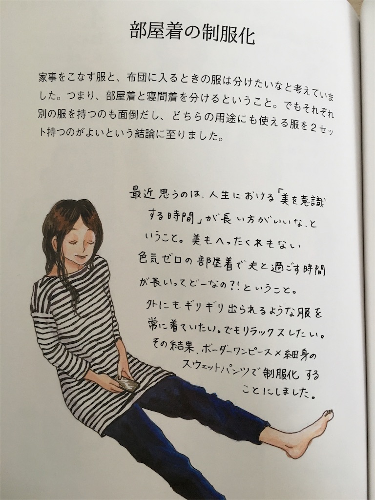 おふみさんの書籍「服を減らせば、おしゃれになる」にも部屋着に関する記載があり、ボーダーというあたりも一緒だぁ〜と嬉しくなりました。