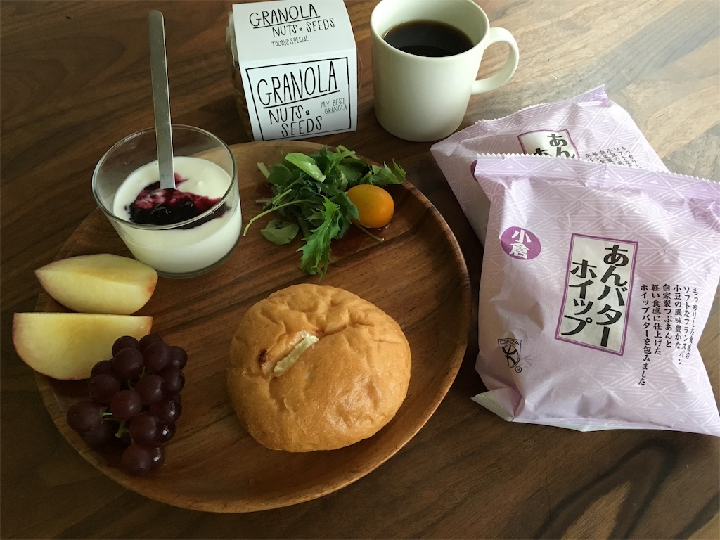 朝ごはんに木村屋のあんバターホイップ。めっちゃ美味しくて家族みんな大好き。デパ地下に行ったら高確率で買って帰ります。