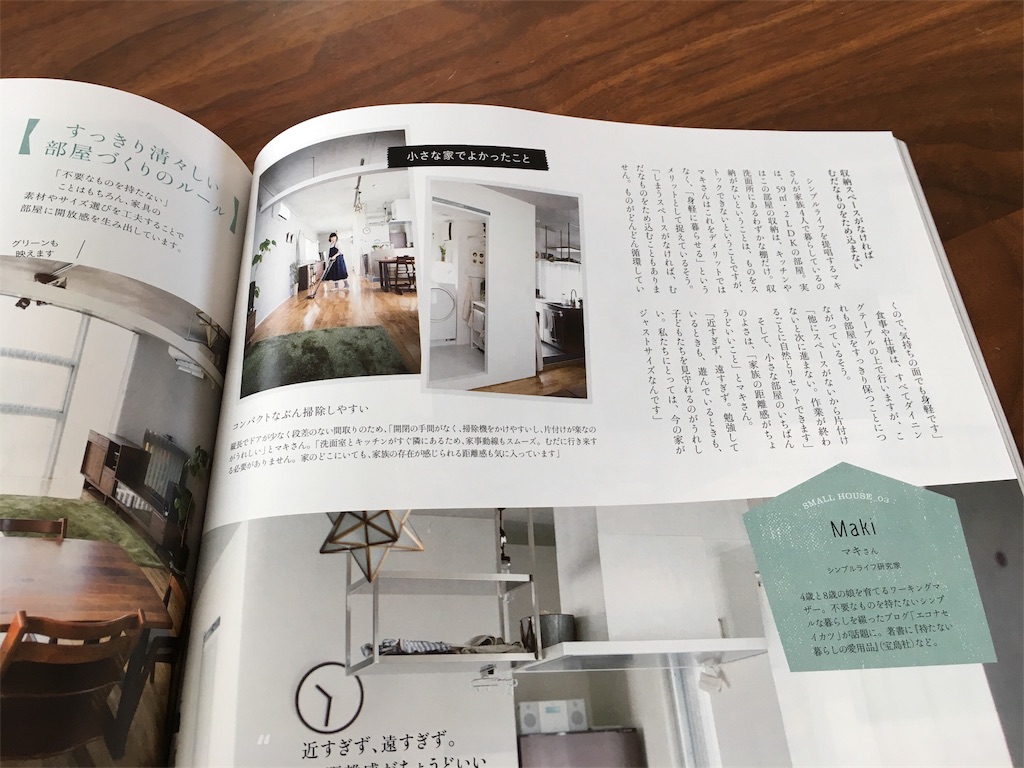 「小さな家の、豊かな暮らし」の特集で2ページ我が家のインテリアが出ています。