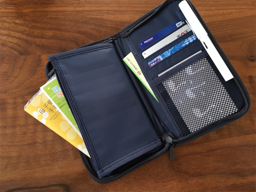 母子手帳や通帳、ハガキ、お札、小銭、カード、ペンまで色々入るから何に使おうか考え中です。