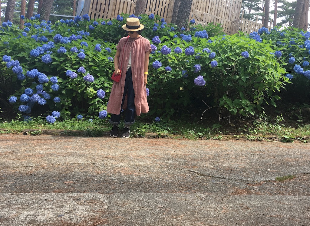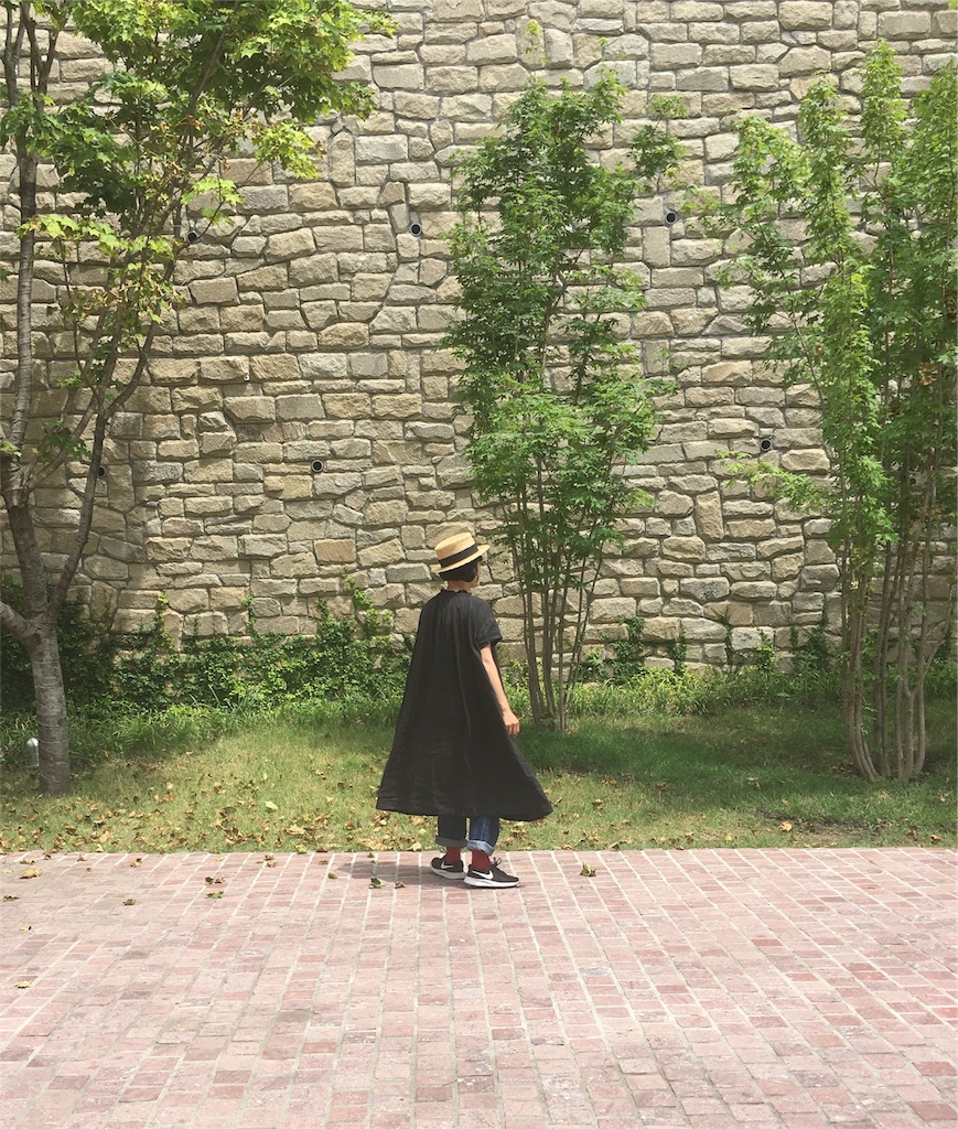 夏の定番、スニーカーやジーンズ、麦わら帽子にちょこっとワンピを合わせるだけでいつもとは違うオシャレさも出る気がします。袖口を1.2回折って少し短くアレンジしてもスッキリ着れます。