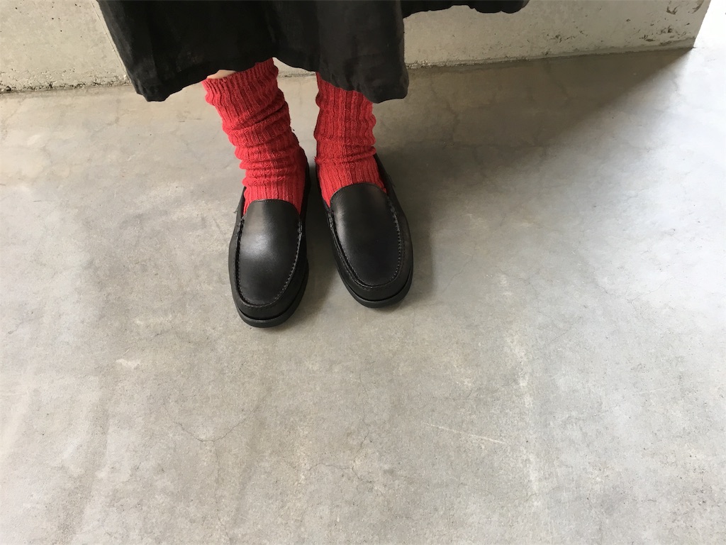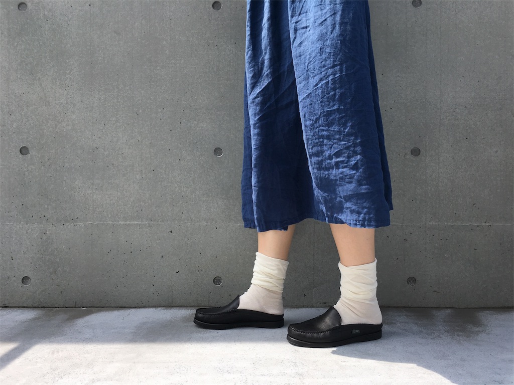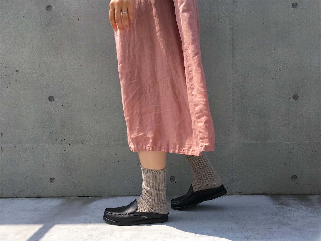 パラブーツの”BAHAMAS(バハマ)“です。ぱっと見はローファーのように見えますが、実はつっかけサンダル風(笑)