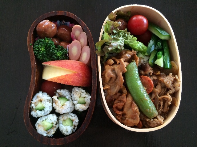 左側のこどものお弁当はカッパ巻きにしました。