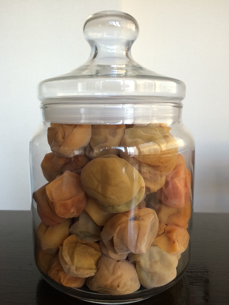 氷砂糖でべったべたなので新聞紙の上ですが。