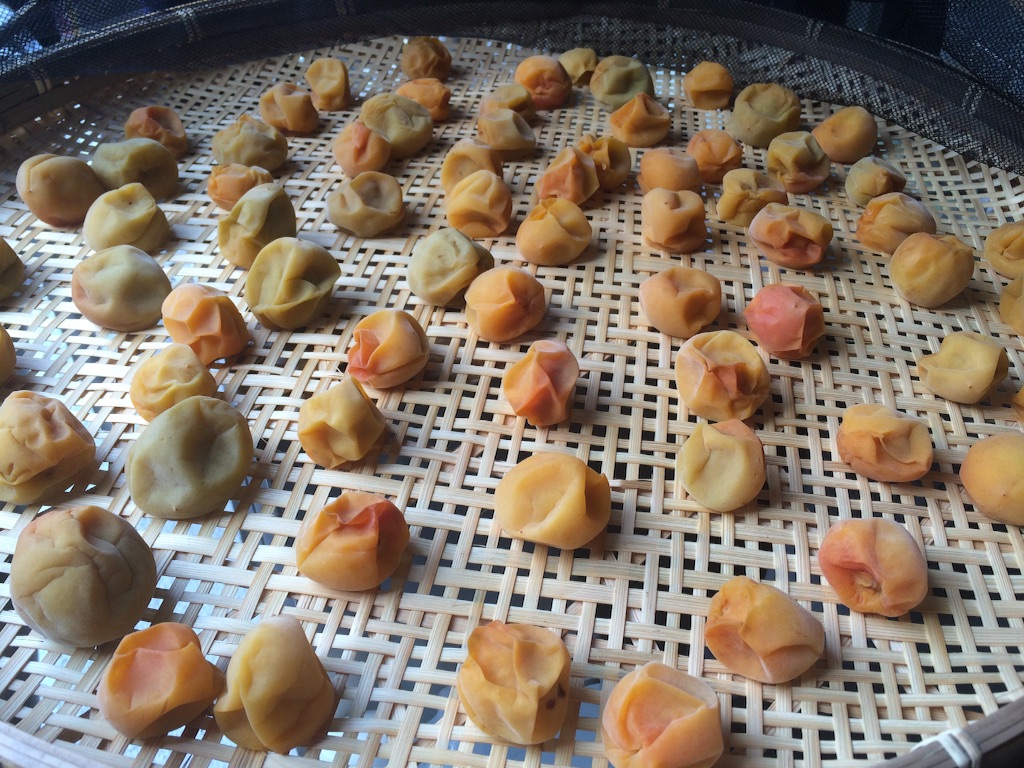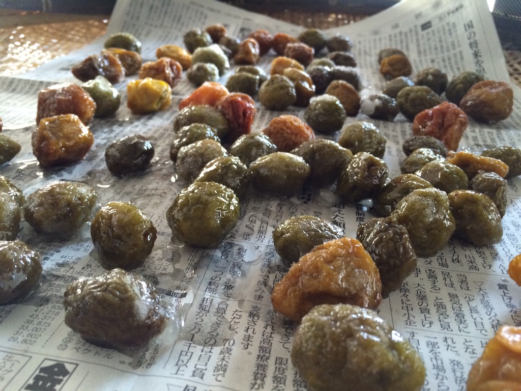 8月の炎天下の中、ざるに梅を広げ2日間干しました。