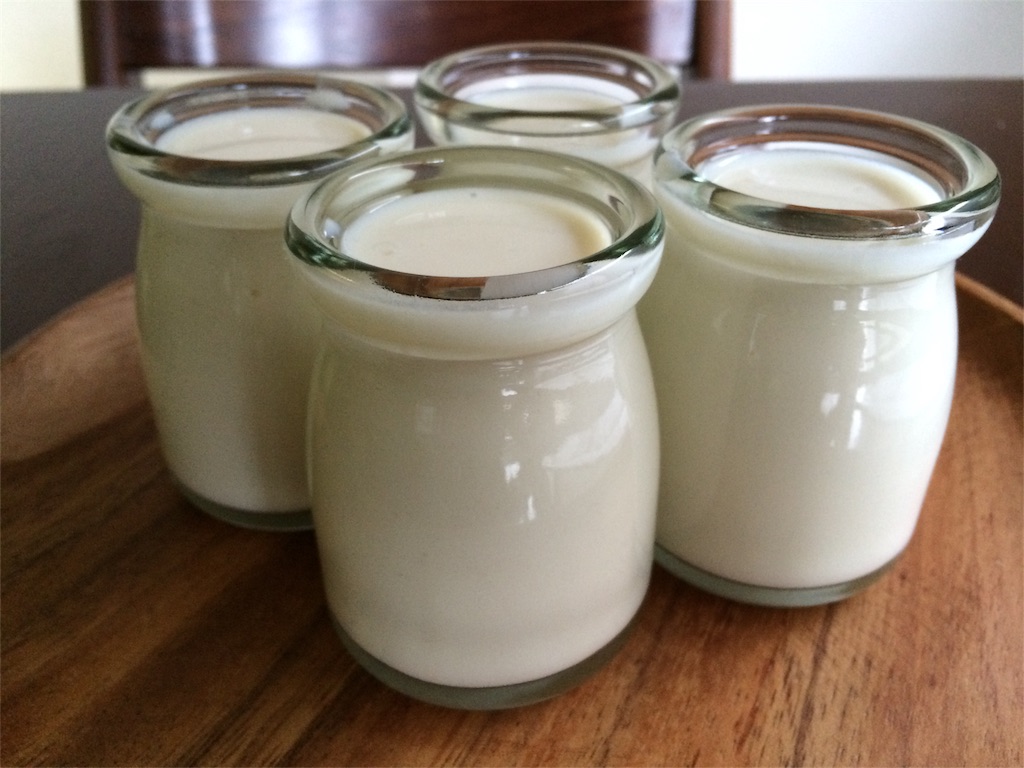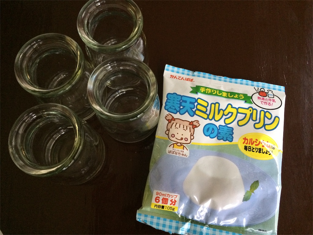 プリンのビンは再利用です。これで作るとお店のプリンみたいで好評。