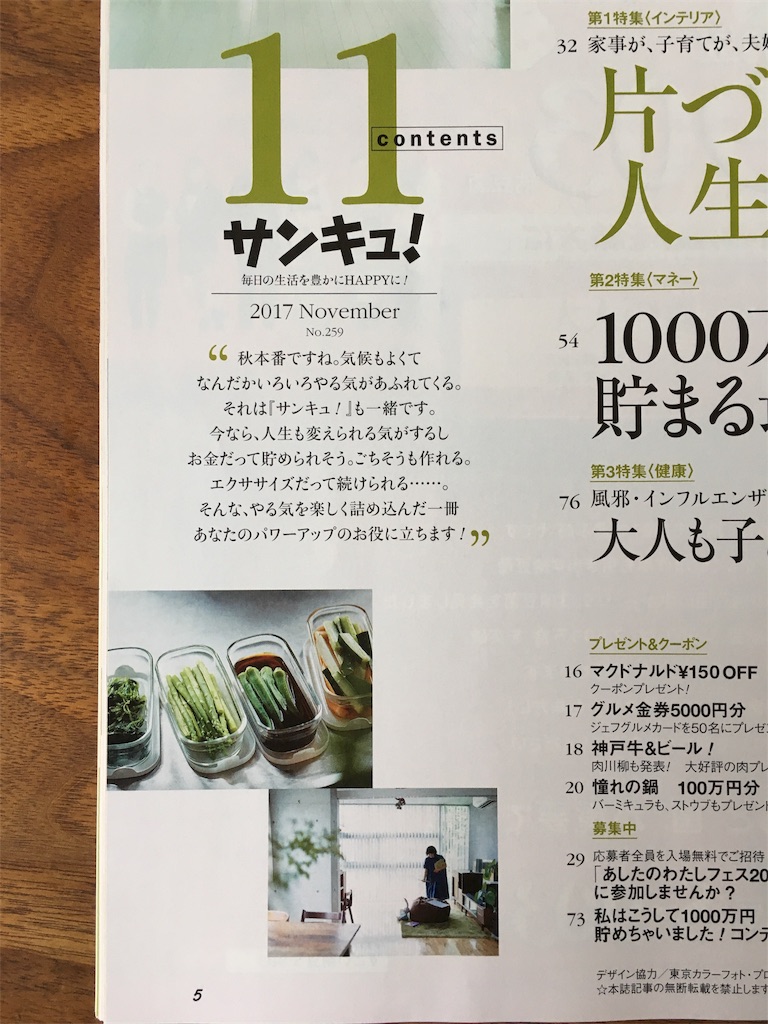 現在発売中のサンキュ!11月号に4ページ掲載していただきました。