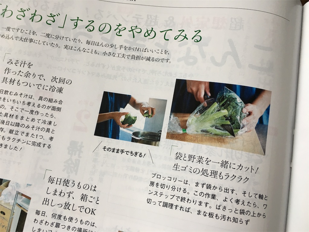 撮影前に決まっていたラフ案ではトイレ掃除の話を載せる予定だったんですが、取材中にさりげなくブロッコリーの処理をしていたら、