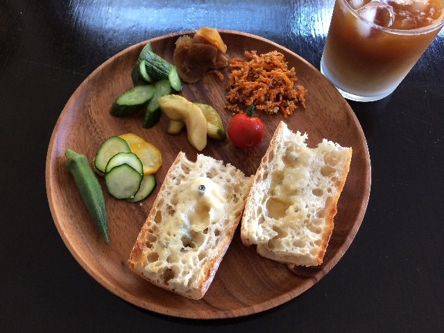 ズッキーニは塩麹のみで浅漬け風。茹でオクラ、きゅうりはぬか漬け。