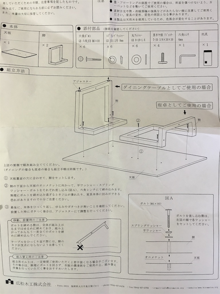 黒い脚が六角レンチ1本で、ダイニングテーブルからローテーブルへ早変わり。