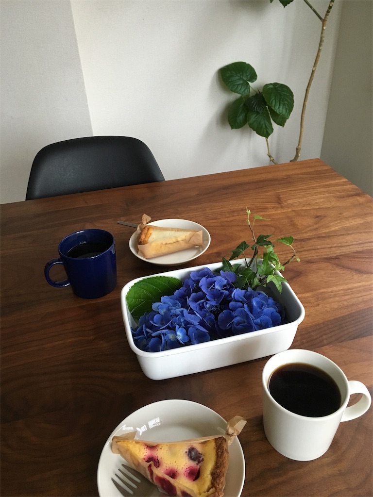 紫陽花のこの色合いがマキさんちのテーブルによく映えますね♪