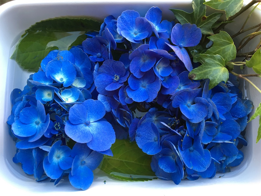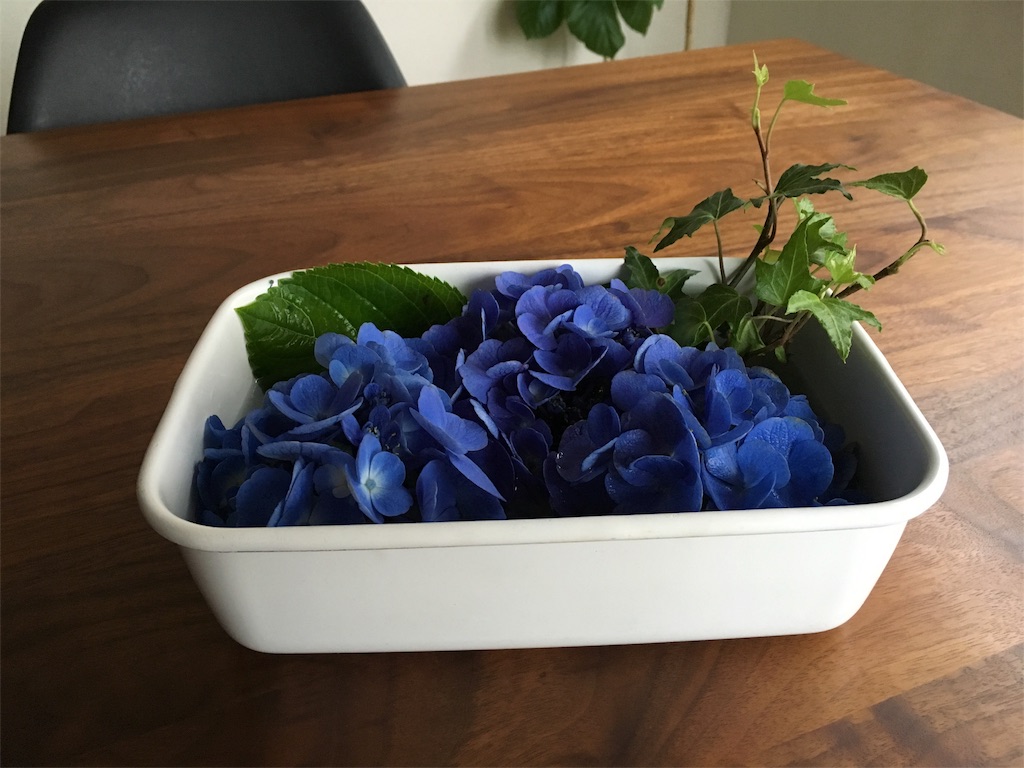 アジサイを持ってきたご本人からは、この野田琺瑯の使い方、斬新すぎ!と言われましたが。