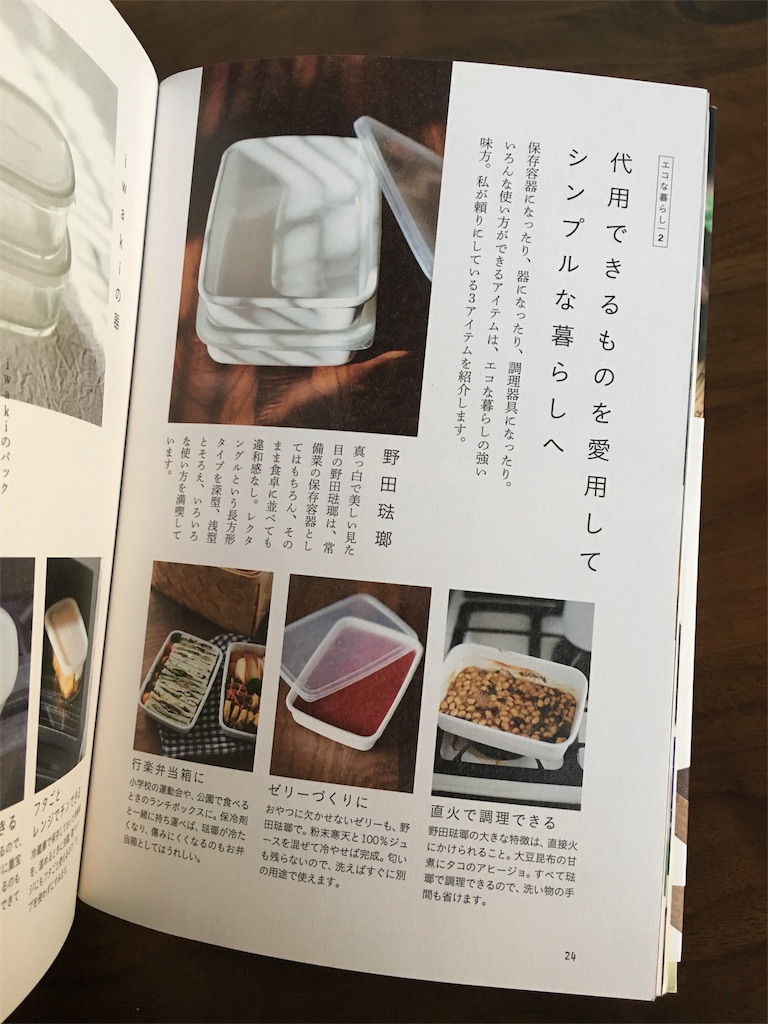 著書「エコな生活」のP24にも野田琺瑯への愛が。