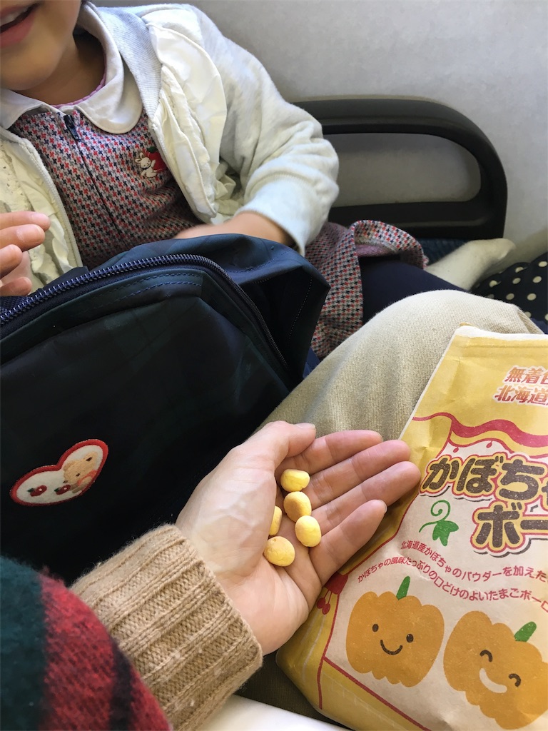 お菓子ならボーロが使えます。このときの移動中の遊びは、