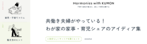 公文のWEBサイト「Harmonies with KUMON」に我が家の家事・育児シェアを掲載していただきました。