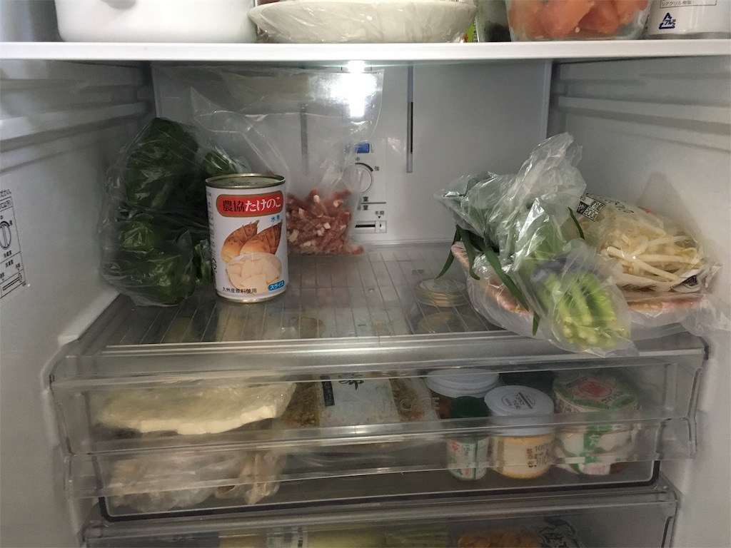 ワタシは普段から「晩ごはん何にしようかな?」と頭を占領されたくない人なので、冷蔵庫開けたら、一瞬で思い出せるような工夫をしています。