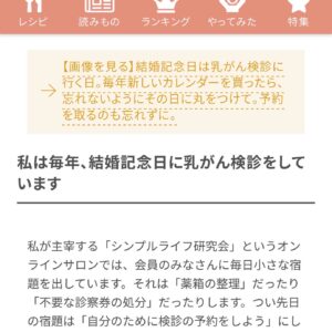 WEB限定のこぼれ話は、毎年の検診は覚えやすい日に。私は、結婚記念日に乳がん検診を入れてます。