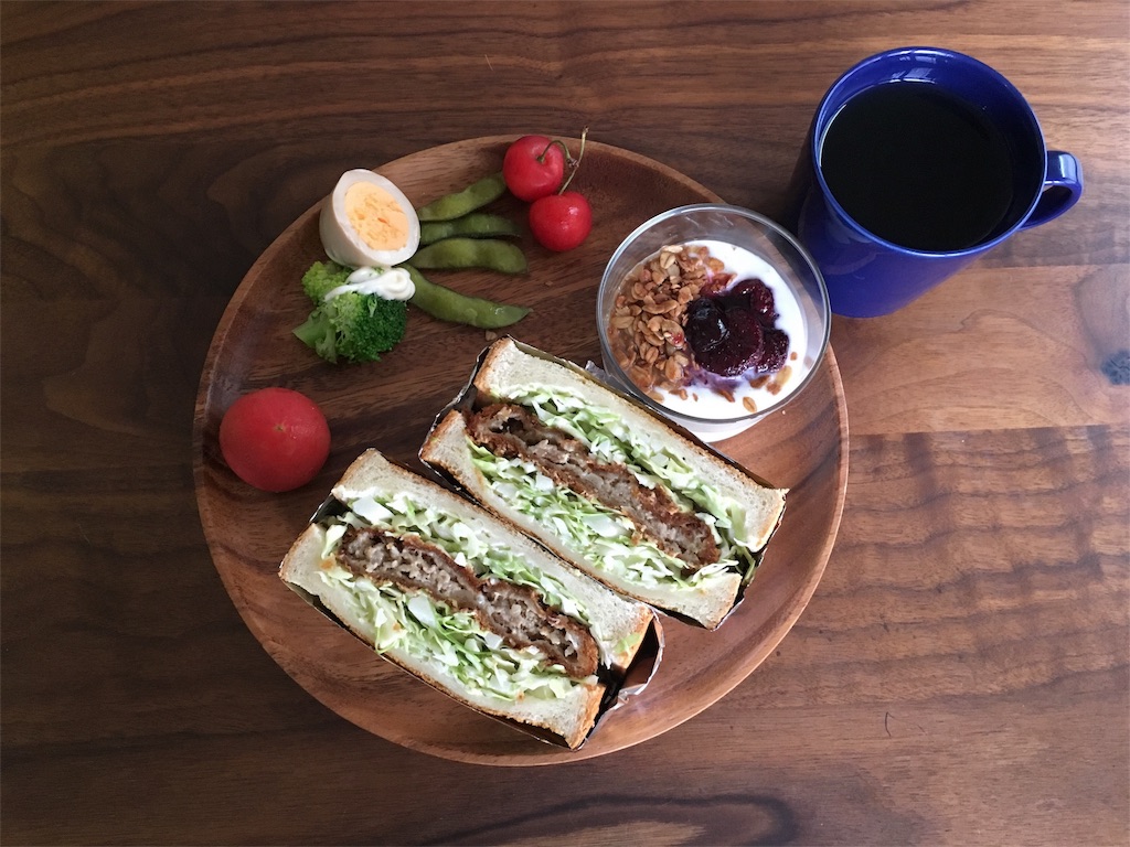 お肉屋さんのメンチカツを使った朝ごはん。