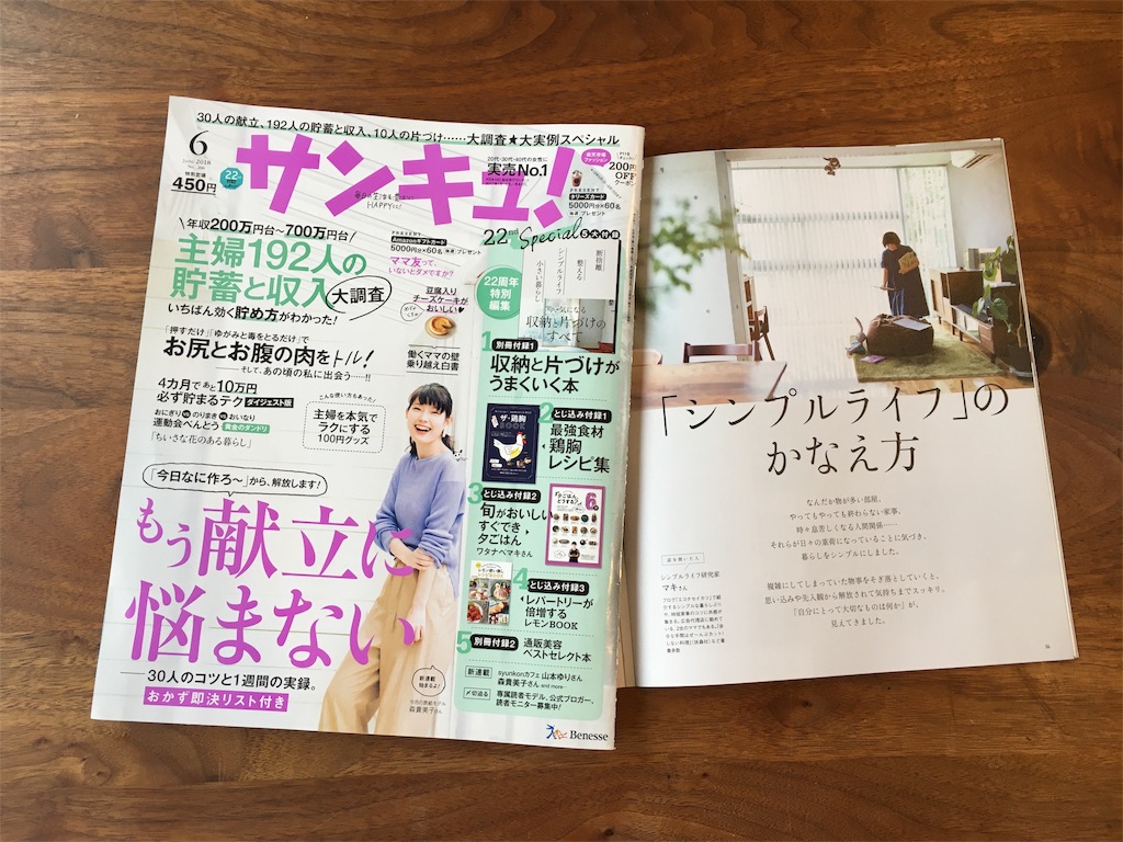 発売中のサンキュ!6月号にも「シンプルライフ」のかなえ方でもチラッとお話をさせていただきました。