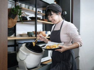 そして揚げ物調理も、撹拌しながら揚げるので、少ない油でできて、コンロ周りも汚れず済むからお掃除がラクちんです。
