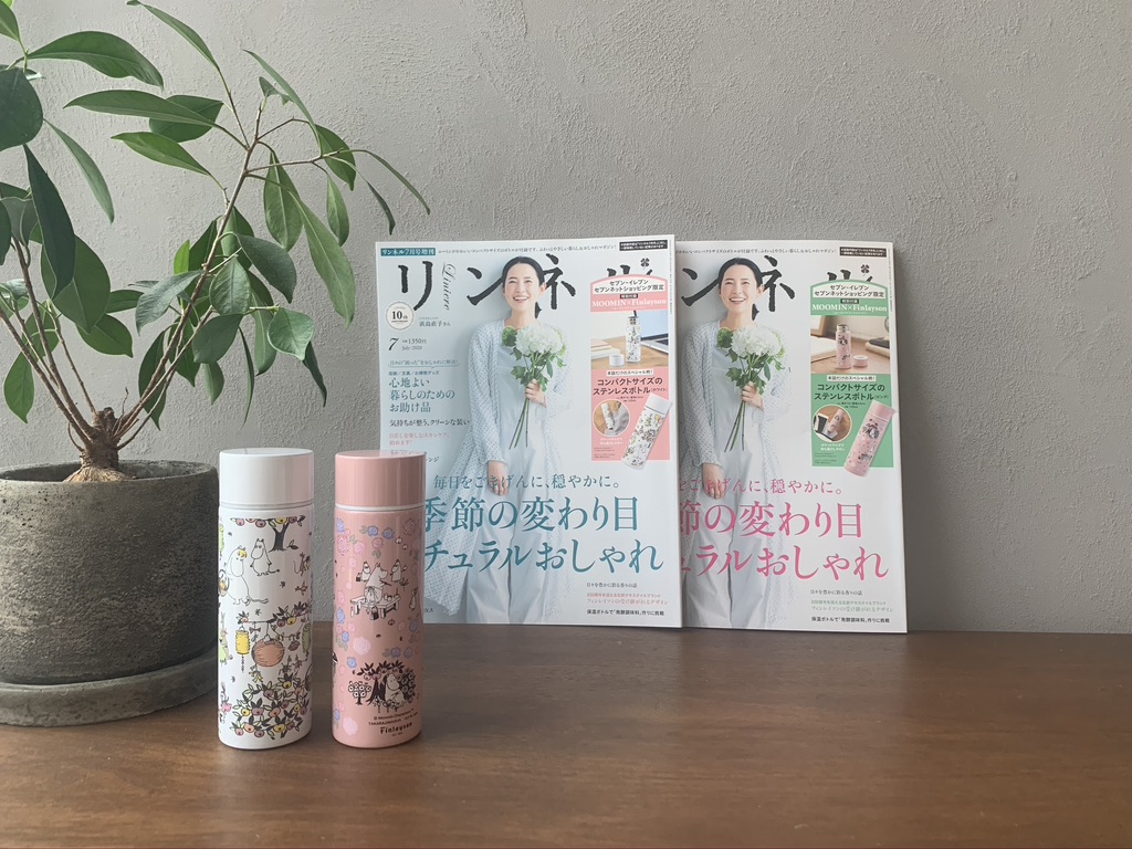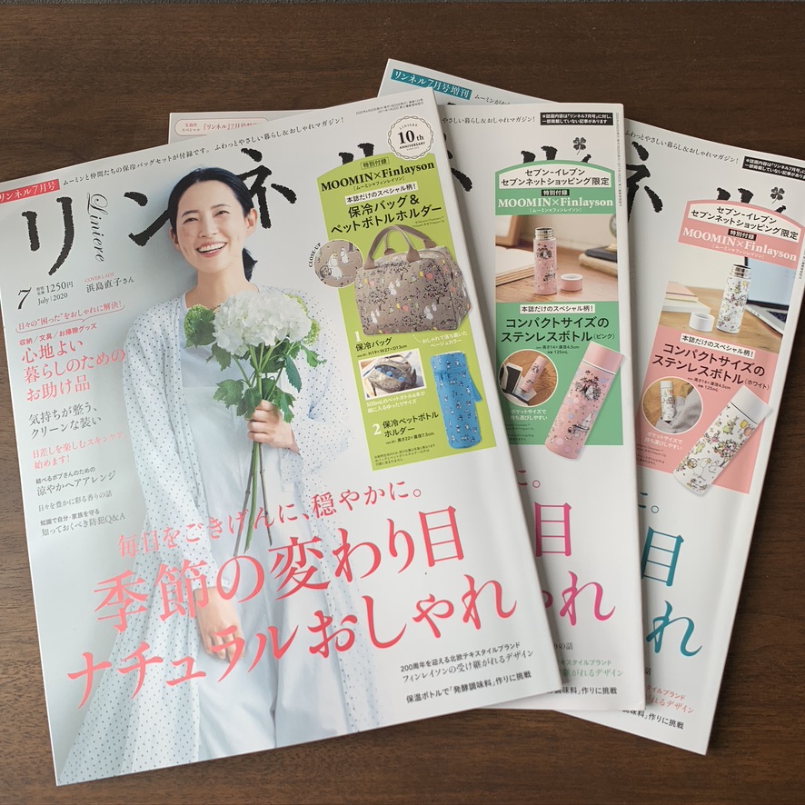 今月号のリンネルは4冊同時発売。雑誌の中身はほぼ同じなんですが、付録が4種類から選べるんです。今月はムーミン。