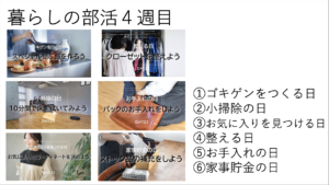 25日間の「暮らしの部活」はいかがでしたか?家事全般、毎回違うお題を出したので、好きなお題、苦手なお題、やる気にみなぎったお題、スルーしたお題、色々あったのではないでしょうか。
