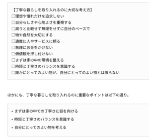 ていねいな暮らしは、時間の使い方や物の持ち方につながっていくという結論でした。とても興味深い内容になっているのでぜひクリックしてお読みください(無料です)