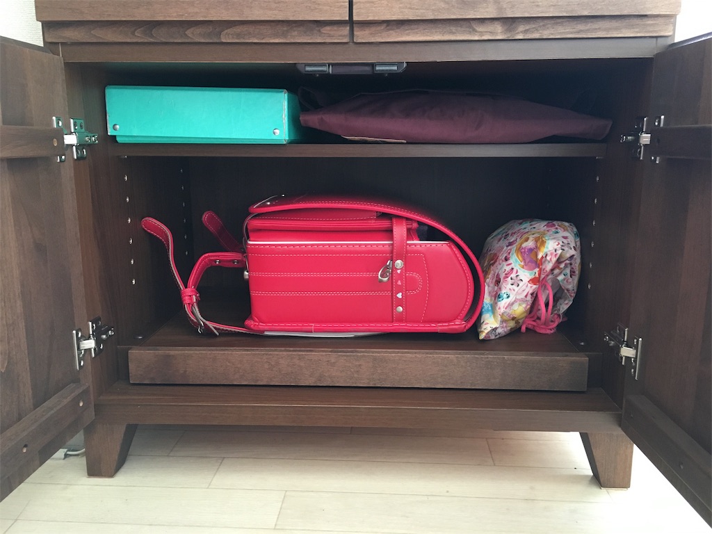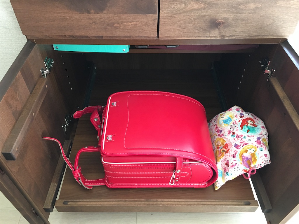 下段、本来はプリンター置くスペースみたいですけど、今のところランドセルを。