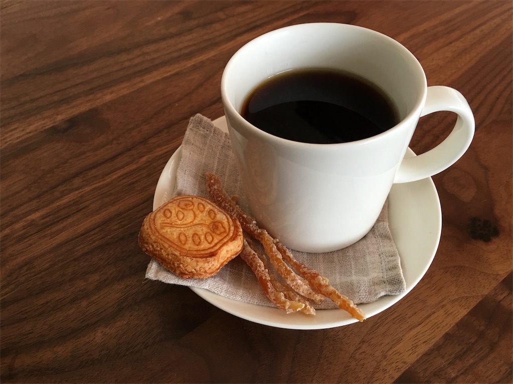 少し大きいので、コースターを敷いておやつと一緒に。