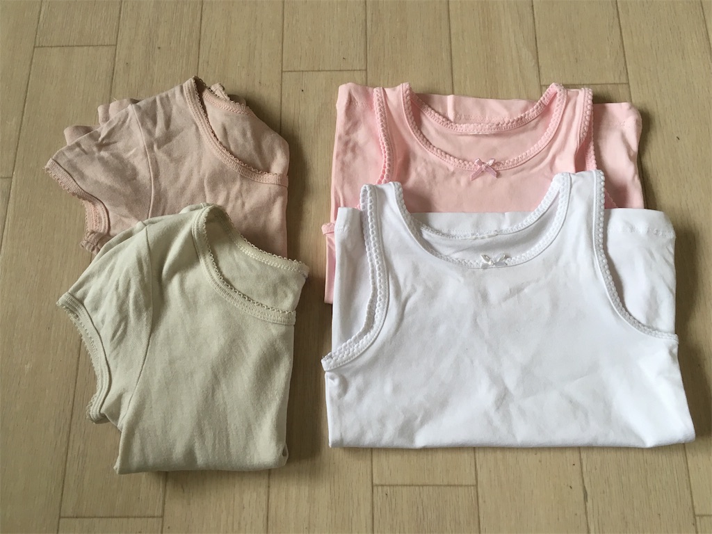 2人の子どもの下着類は秋冬の半袖から春夏のタンクトップに。