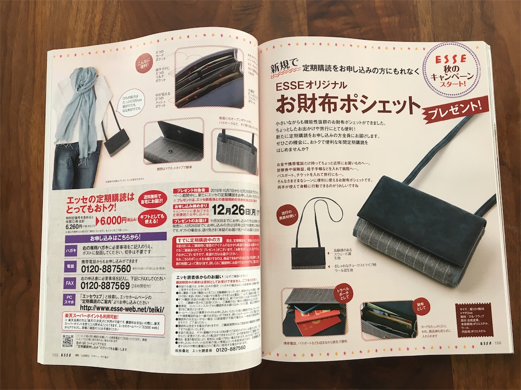 ESSEさんも、年間定期購読をしたらもらえるみたいです!