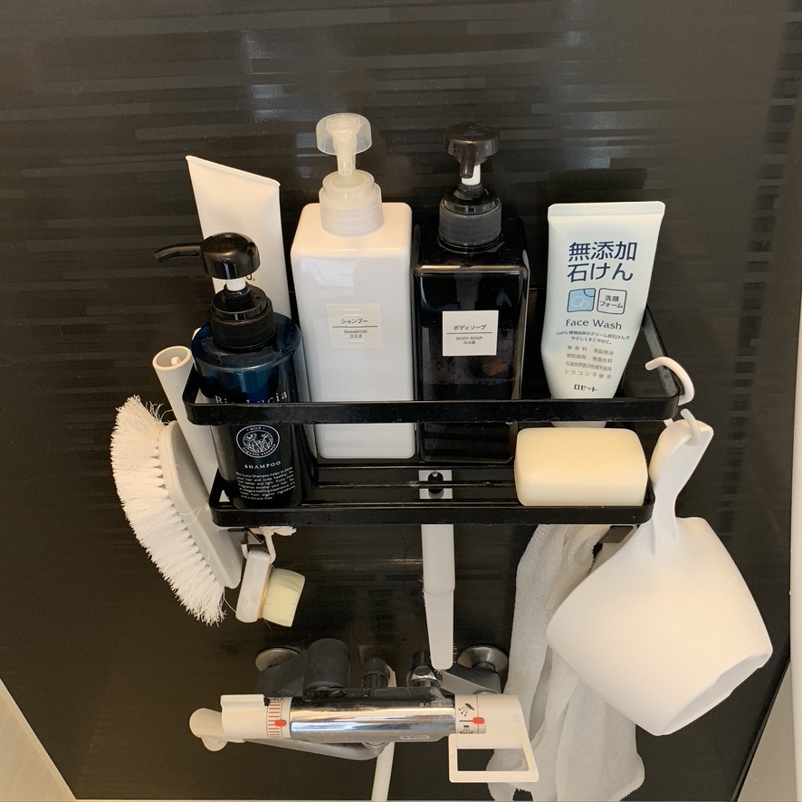 実は、お風呂掃除は夫担当なんで、正直あんまり収納について興味がなかったので後回しにしていた場所でした。でも、この山崎実業のマグネットラックを設置したらすごくいい!掃除がラクになった!と大絶賛。
