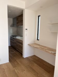 時短の家は、あえてキッチンを個室にしていて、生活感や散らかりが死角で隠せるようにしています。収納も多くして、とにかくさっと片付けられるように!