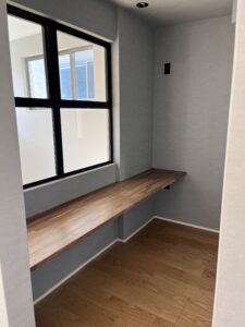 両立の家はテレワークができる設定にしているので、1階に書斎スペースを。代わりにお風呂などの水回りを2階にしています。
