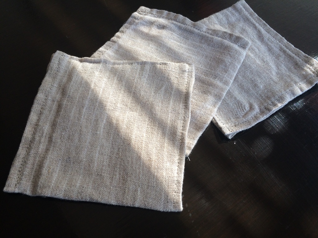 1枚のリネンから6枚のコースターが出来ました。