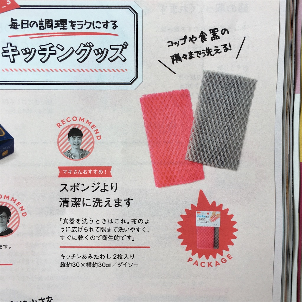今日紹介した編みたわし、本日発売のレタスクラブ「今度こそ! 100円グッズで完璧収納」で達人のおすすめアイテムとして載せていただきました。