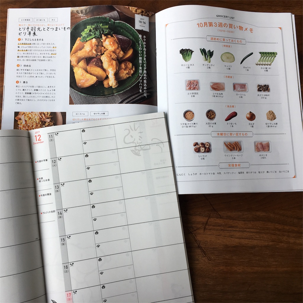 合併号なので付録が豪華!スヌーピーの家計簿と10月1ヶ月献立です。