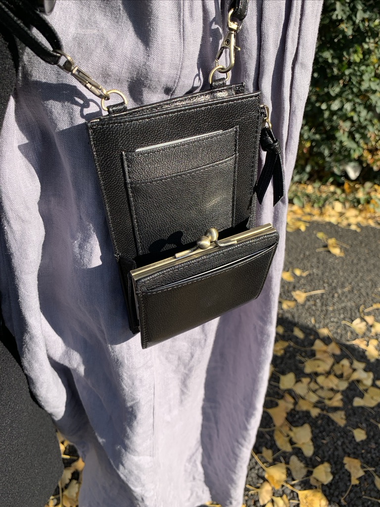 ポイントはただのスマホ入れじゃなくて、お財布としてもちゃんと使えるところ。がま口をつけて小銭まで取り出しやすくしています。