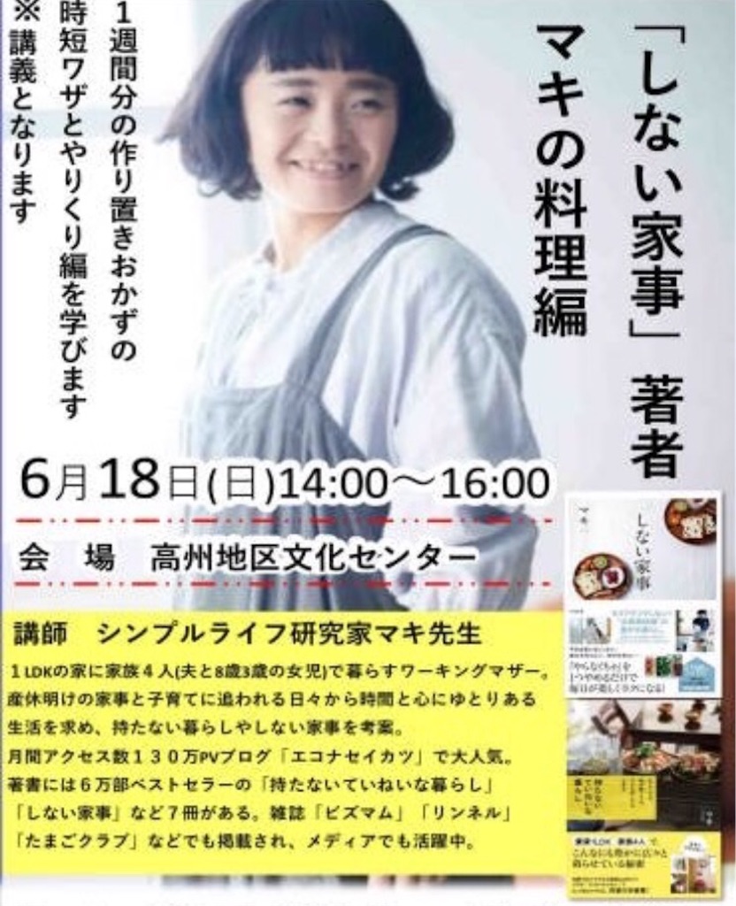 いよいよ、5月20日(土)NHK文化センター千葉教室で「しない家事で豊かな暮らし」講座&ゆるく暮らす 毎日がラクで気持ちいい、シンプルライフの先行発売サイン会です。