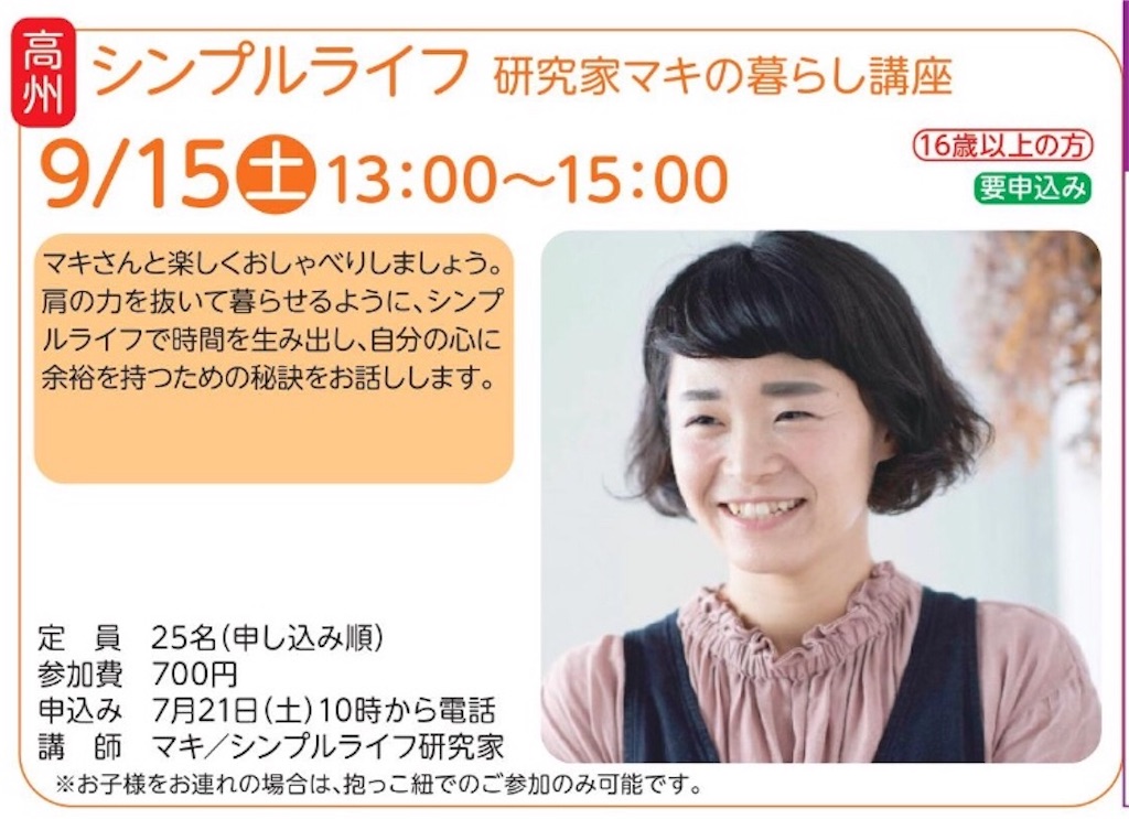 申し込み:シンプルライフ研究家 マキの暮らし講座 / 三郷市立高州地区文化センター